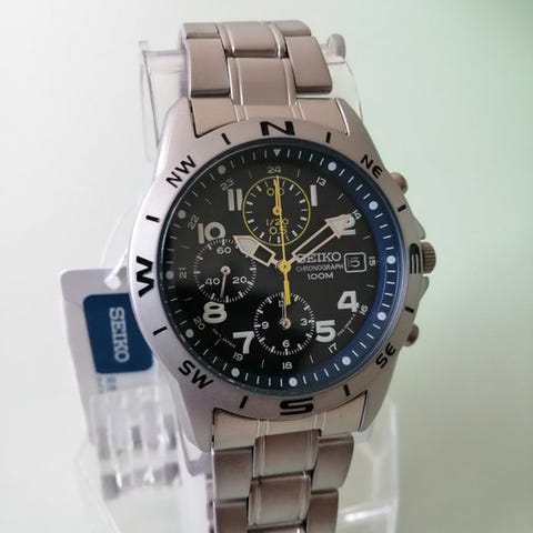 ◆Tämä on uusi ja käyttämätön sotilasmalli maailman johtavan brändin SEIKO SEIKO:n yhdestä suosituimmasta sotilasmallistosta.◆Tämä on uudelleen suunniteltu tyylikäs kronografi, jossa rei'ytetyt kädet pitkiä ja lyhyitä käsiä varten, parempi näkyvyys kellotaulun sisäisissä alitaulukoissa sekä bezelissä olevan suunnan (N, NE, E, SE, S, SW, W, NW) näyttöön.◆Määritykset: 1/20 sekunnin nopea keskikronografi, päivämääräkalenteri, lumibrite-luminesenssi, 100 m vedenkestävyys sekä muita merkittäviä toimintoja.・Liike: SEIKO-quartz・Materiaali: ruostumaton teräs・Pienisekunti・Päiväkalenteri・Ruuvikansi・Lumibright-luminesenssi・Nylon-nauha・Koko: kotelon halkaisija noin 39 mm, paksuus noin 10 mm・Oheistarvikkeet: SEIKO-rasia, takuukortti jne.※ Seikon siirtyessä kohti paperittomia toimintatapoja, painettujen ohjekirjojen sisällyttäminen lopetetaan asteittain.Varotoimena tässä on tämän mallin kaliiperin (7T92) englanninkielisen ohjekirjan URL:https://www.seikowatches.com/jp-ja/-/media/Files/Common/Seiko/instructions/English/7/7T92/7T92.pdfVoitte olla varmoja, että ilmoitamme viestillä, mikäli URLiin tulee muutoksia.★★★ SEIKO-brändin kellot kuuluvat nyt takuuseen (kolmen vuoden takuukortin kanssa) myös Japanin ulkopuolella.Kunkin maan huoltopisteiden osoitteet löytyvät takuusta kohdasta ”SEIKO International Service Network”.Lisäksi kaikki yrityksemme myymät SEIKO-kellot ovat aitoja.Olemme tähän mennessä myyneet yli 50 000 SEIKO-kelloa, eikä mikään niistä ole täten todettu väärennökseksi.Syynä on, että hankimme ne yhdeltä Japanin johtavista SEIKO-sertifioiduista toimittajista, joihin yksittäisillä myyjillä ei ole pääsyä.Kaikki käsittelemämme kellot ovat uusia ja käyttämättömiä, joten listauskuvat ovat samaa mallia edustavia aiheita.Arvostamme ymmärrystäsi.**************************************************************************************Tämä tuote lähetetään Japanista.Huomioithan, että asuinmaastasi riippuen voit olla velvollinen maksamaan lisävelvoitteita ja tuontiveroja.Yleistä nyrkkisääntöä noudattaen: Ranskassa 20 %, Espanjassa 21 % ja Italiassa 22 %.Tarkista maasi lait lisätietoja varten.