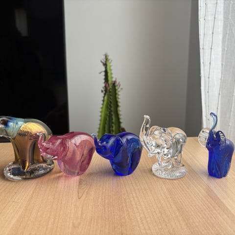 Hakusanat: tarvikkeet, painot, lasipainot, eläimet, norsut, elefantit, kristalli, retro, vintage, design, Intia, India, Indian design. Lähetän.