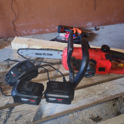Brughe akkuketjusaha. Sähkökäyttöinen ketjusaha, jossa on akkupaketti rungon päällä ja ketjuohjainlaippa. Rungossa on merkintä brushless-moottorista. Soveltuu puun ja oksien katkaisuun sekä muuhun puutavaran sahaamiseen. Tarkemmat tekniset tiedot,akku 40 v.akku ja laturi mukana,erittäin hyvä rakennustyömaalla ja oksien sahaamisen. Takuuta vielä on jäljellä. Hinta 120 e,netto….minulla ei tarvetta,akkusaha
