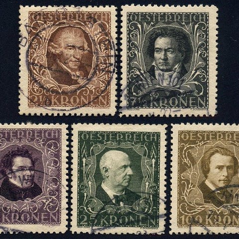 Itävalta, 1931, ANK-Nr. 524 – 529, 'Itävaltalaiset runoilijat', täydellinen sarja (6 arvoa) jokainen alareunan pala, postfrisch **, erinomaisessa säilyvyksessä