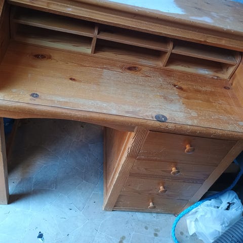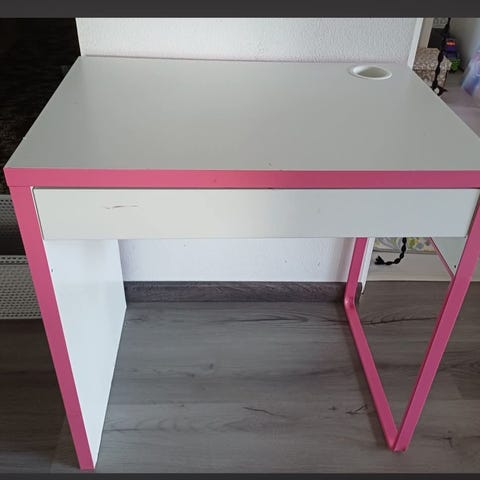 Hyväkuntoinen ja ehjä kirjoituspöytä. Pinnassa ei mitään isompaa kulumaa. Reunasta hieman maalia irronnut. Poistuva malli IKEAssa.