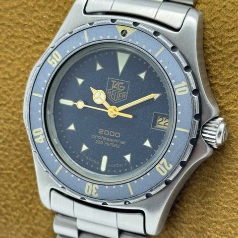 Brand: TAG Heuer 2000 - Professional 200 Meters Blue Moondust - 972.613 - Men - 1980-1989Reference Number:972.613Serial Number:972.613Gender:MenPeriod:1980sMovement:Quartz Cal.2.89Case material:SteelType:Analoque WristwatchShipped Insured:YesCondition:Good Please examine the photos in detail. There are traces of useCase Diameter:approx.34mm (excluding crown)Total Length:18,5 cmCrown:OriginalBuckle:OriginalBracalet:OriginalProduct Information:All of our watches are professionally serviced by experienced watchmakers.The servicing process includes complete disassembly and cleaning of the movement, precise lubrication of the necessary components, and fine adjustments to ensure optimal timekeeping performance.Shipping:Your watch will be shipped securely and fully insured via DHL, UPS, or FedEx. A tracking number will be provided once the shipment is dispatched.Upon request, shipping via PTT (the national postal service of Türkiye) is also available. This option may help reduce customs procedures in some countries, but delivery times may be longer compared to DHL, UPS, or FedEx.Customs and Taxes:Depending on your country’s import regulations, additional customs duties or taxes may apply. These charges are the buyer’s responsibility. We recommend checking your local customs policies before purchase.After-Sales Support:Once you receive your watch, please inspect it carefully to ensure everything is functioning properly. If you encounter any issues, feel free to contact our after-sales support team. We are committed to resolving problems promptly and professionally.Collectible and Investment Value:Some models are highly sought after by collectors and may appreciate in value over time. Our watches are not only stylish accessories, but also smart investment pieces.Use and Aesthetics:With timeless designs and high-quality craftsmanship, our watches are perfect for both daily wear and special occasions. Their versatile and elegant appearance makes them easy to pair with both classic and casual outfits.Cancellation and Return Policy:In the event of a cancellation, the return shipment must be arranged by the buyer.We only accept returns sent via the official national postal service of the buyer’s country (e.g., Swiss Post, La Poste, USPS, etc.).Returns via private courier services such as UPS, DHL, TNT, or FedEx are not accepted.Please note that we do not provide return labels; the buyer is responsible for handling the return shipment independently.
