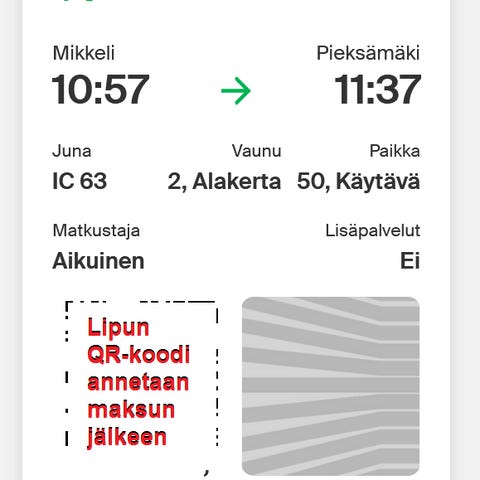 22.4 Helsinki-Imatra junalippu x 2