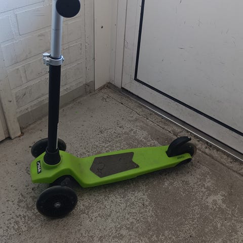 Oranssi potkulauta, jossa on säädettävä ohjaustanko. Laudassa on jalkaosa liukueste pinnalla. Sopii potkutteluun tasaisilla alustoilla. Vain nouto Postipuistosta.