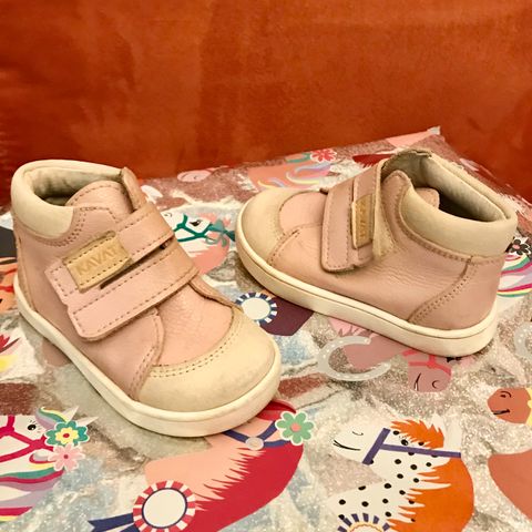 Hyvässä kunnossa, yhdellä lapsella pidetyt Kickersin ensikengät. Hyvä, joustava pohja, helppo pukea ja riisua ja mukaha lapsen jalassa. Koko 22. Vain hieman kulumaa kenkien etuosassa