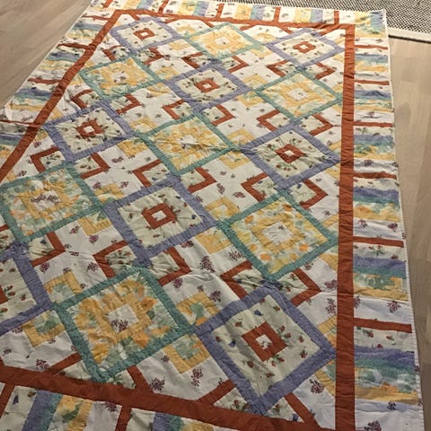 Siistikuntoinen käsityönä tehty peitto