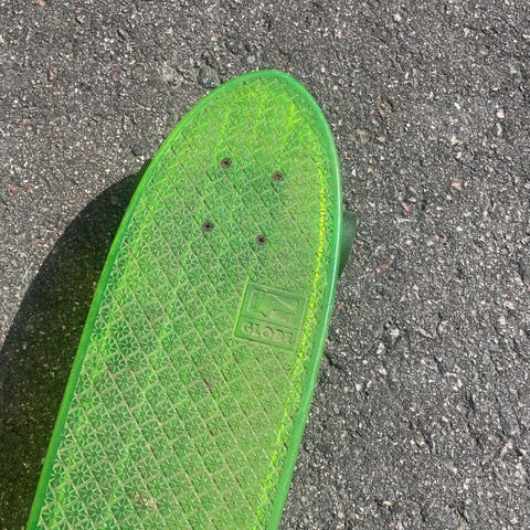 Muovinen cruiser-lauta. Laudassa on valkoinen muovidekki ja pienikokoiset renkaat, jotka soveltuvat kaupunkiajoon ja lyhyille matkoille tasaisilla alustoilla. Sopii esimerkiksi lyhyisiin siirtymiin ja rullaamiseen kävelyteillä ja piha-alueilla.