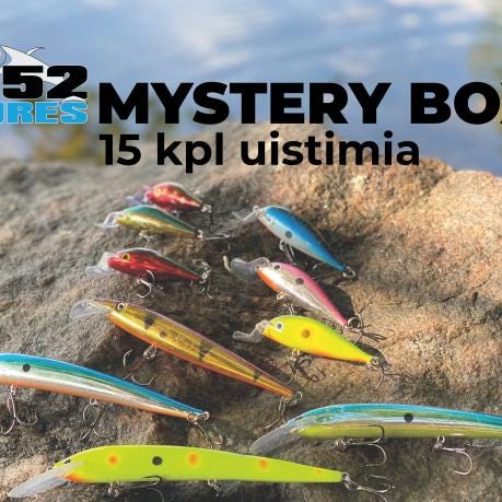 B52 Mystery Box sisältää 15 erilaista viehettä hauelle, kuhalle ja ahvenelle. Täydellinen yllätysboksi veto- ja heittokalastukseen.