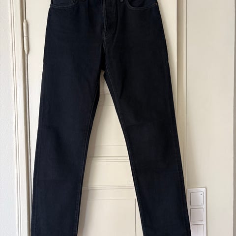 Acne Studios farkut naisille. Koko XS, vyötärökoko W26. Väri musta. Materiaali puuvilla. Perinteinen viisitaskumalli vetoketju- ja nappikiinnityksellä. Soveltuvat arkikäyttöön ja yhdisteltäväksi erilaisten yläosien kanssa.