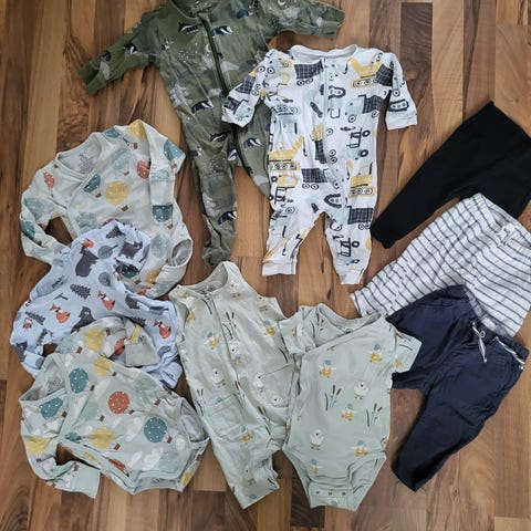 Myydään settinä keväinen vaatepaketti koossa 74cm.