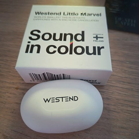 Mynnissä takuuvaihdosta saadut nappikuulokkeet. Uudet ja paketti vielä muoveissa. Kerkesin jo ostaa uudet, joten nämä joutaa myyntiin.