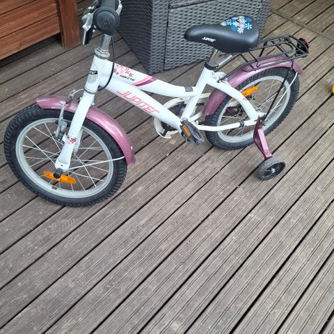 Kohtalaisessa kunnossa oleva 16” White- merkkinen lasten pyörä.