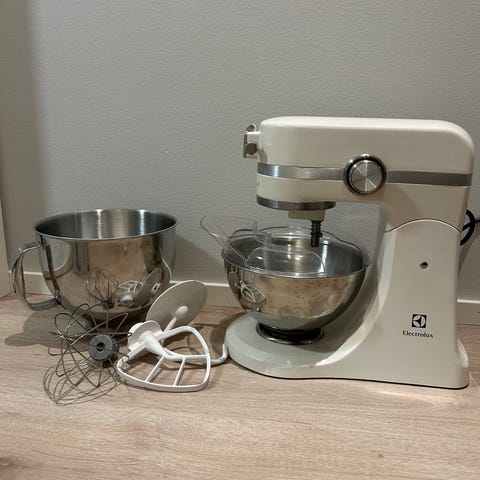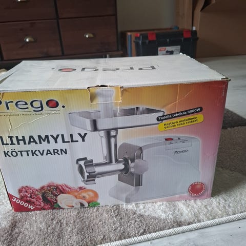 Muutaman kerran käytetty yleiskone. Kaikkia lisälaitteita ei käytetty kertaakaan, mm lihamylly käyttämätön. Kuvan kaikki lisälaitteet mukaan. Blenderi, raastimet, lihamyllyn osat ja vatkaimet.