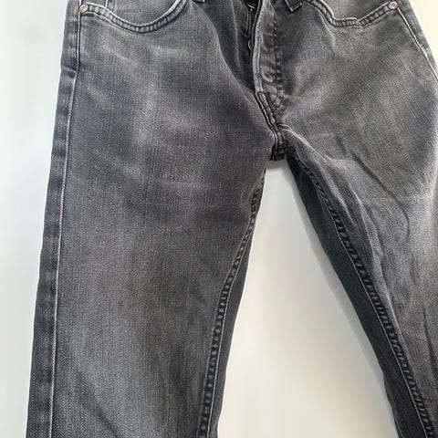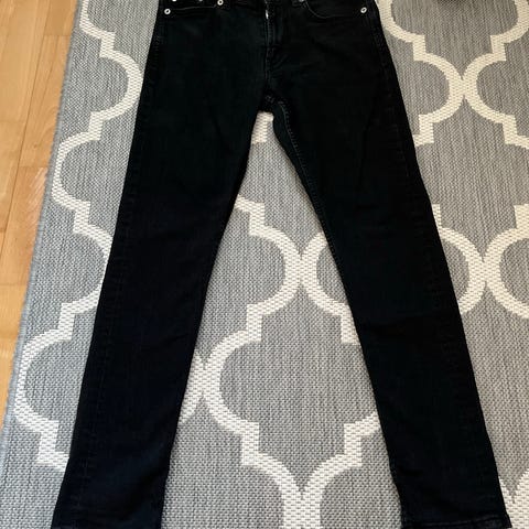 Mustat hyväkuntoiset farkut, polvien seutu rei'itetty.