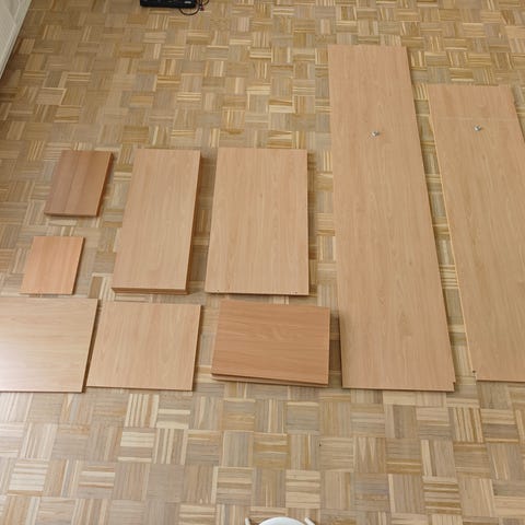 Vaatehuoneen sovella-hyllyssä olleet hyllylevyt.