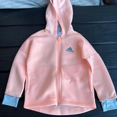 Adidas lasten verkkariasu tytöille, koko 110. Harmaa kaksiosainen asu, jossa hupparitakki ja housut. Materiaalina puuvilla. Hupparissa vetoketju edessä, huppu ja resorit hihansuissa sekä helmassa. Edessä ja selässä vaaleanpunaiset Adidas-logot ja -raidat. Housuissa joustava vyötärö ja resorit lahkeissa sekä Adidas-logo ja -teksti lahkeessa. Sopii arki- ja vapaa-ajan käyttöön.