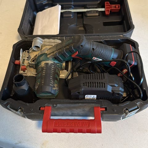 Mukaan pyörösaha, 2 18v akkua sekä laturi.