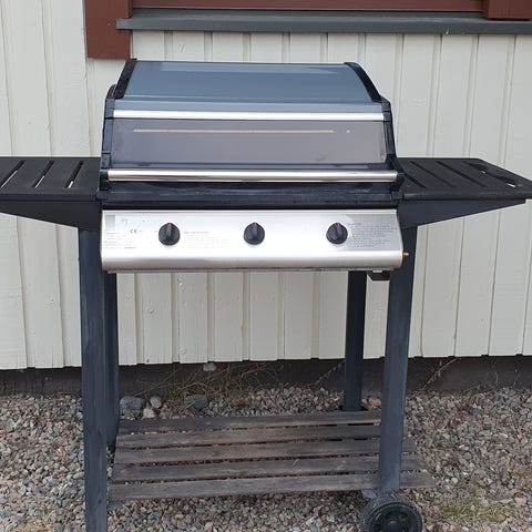 Kaasugrilli, jossa on kaksi poltinta ja suljettava kansi. Grillissä on metallinen ritilä ja sivutasot molemmin puolin työskentelytilaa varten. Alla on hylly tasoa ja säilytystä varten. Grillissä on pyörät helpottamaan siirtelyä. Mukana tulee kaas letku ja paineensäädin. Soveltuu ulkokäyttöön esimerkiksi pihan tai mökin ruoanlaittoon.