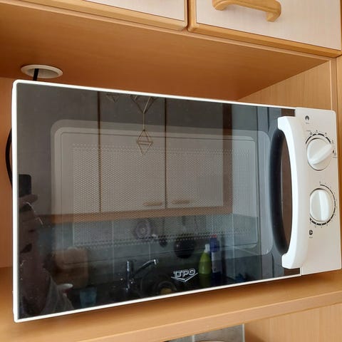Valkoinen Whirlpool mikroaaltouuni ja kupu
