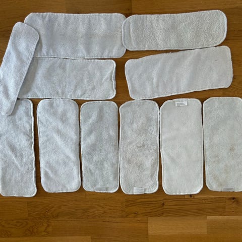 9 kpl taskuvaippoja. 5 kpl Muksut, 1 kpl Fuzzi Bunz, 2 kpl Pilvi ja 1 kpl itse tehty. Koko noin s-m, itse tehty tehty ja fuzzi bunz noin s, muut vähän reilumpia. Muksujen koko s-m ja Pilvi vaipat menee pidempäänkin. Maksuissa osa sivunepillisiä. Sisäpinnan materiaali vaihtelee.