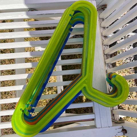 Annetaan leikkimökissä ollut puolipyöreä lasten pöytä.