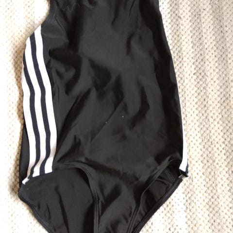 Musta pitkähihainen voimistelupuku. Kokomerkintä lähtenyt pois, ollut käytössä 150-160 -kokoisena. Uimapukukangasta. Muuten hyvä kunto, mutta pääntiessä selän puolella sauman toinen ommel n. 5cm matkalta purkautunut. Siitä huolimatta näyttää ulospäin siistiltä.