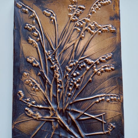 Kuparilevystä taivutettu taulu, joka esittää pontikankeittäjää. Vintage kuparireliefi tai seinäpaneeli. Koko 76 cm x 40 cm