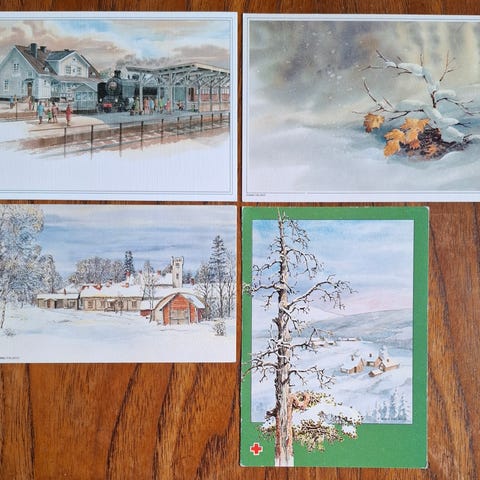 Kimmo Pälikkö taidekortteja 13 kpl, 1989- 1995: Merenkulkuhallitus, Köningstedtin kartano, Pieni Roobertinkatu, Senaatti Center; Aleksis Kivenkatu, Läntinen Brahenkatu, Sederholmin talo, Kesäranta; Haikon, Herttoniemen, Talin, Munkkiniemen kartanot Bengtskär; uudenveroisia, ei kierrätetty