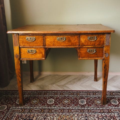Myydään Kruunukalusteen täyspuinen kirjoituspöytä ja tuoli. Ollut käytössä. tietokonepöytänä. Pöydässä on 7 vetolaatikkoa. Pieniä kulumia pöydässä, jotka näkyvät kuvassa. Vain nouto Kempele.