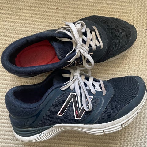New Balancen mustavalkoiset peruslenkkarit. Paljon käytetty, ja kulumaa on - pohjat hiukan kuluneet päkiöistä ja kantapäästä, sisäpuolen vuori kulunut kantapäästä, ja etupuolelta reunoista, nauhojen yläpuolelta. Kaikki viat näkyvät kuvissa. Ovat kuitenkin edelleen ihan käyttökelpoiset, suurin osa vioista jäävät käytössä piiloon. Kokomerkintä 40, mutta naftit, olleet itselläni pienenä 39-kokoisena käytössä.