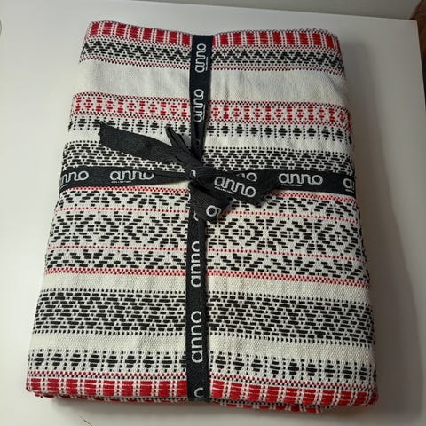 Ostaessa kudoksessa oli kaksi lankaa katki ja korjattu itse (ks. kuva). Muuten moitteeton.