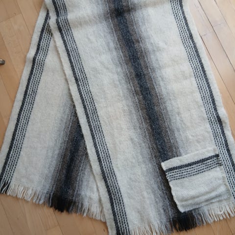 Hyväkuntoinen ja lämmin. Toinen puoli puuvillaa, toinen villaa. Ollut harvakseltaan päiväunikäytössä vuoden verran ja on kaikin puolin puhdas. Tuuletettu säännöllisesti. Viltti kestää kyllä villa-/hienopesun villapesuaineella.