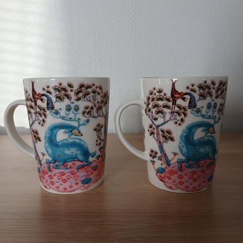 Uudet käyttämättömät tarralliset Iittala Satumetsä mukit pinkki ja vihreä tarroilla. Hinta 22 e kappale. Nouto Kaarinasta tai postitus 6.90 e.