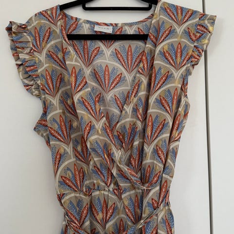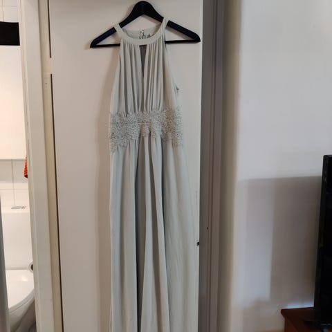 Vila mekko, koko 38. Tumman vihreä väri, pitkähihainen mekko, jossa vyötäröllä kuminauha ja irrotettava solmittava vyö. Materiaali polyesteriä ja mekossa vuori (pl. hihat). Ollut käytössä noin 5 kertaa.
