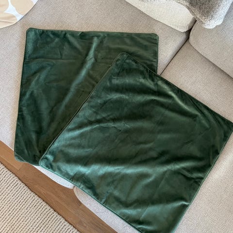 Hyväkuntoiset ja juuri pestyt päälliset. Suorakaiteen muotoiset kooltaan 30x50 ja neliöt 50x50 sekä 45x45. Taitavat olla kaikki tai ainakin suurin osa Ikeasta. Hinta koko paketille.