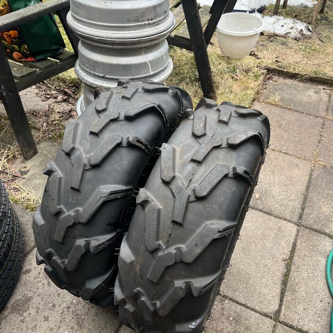 Käyttämättömät renkaat ja vanteet. Hankittu Golfautoon, mutta varmaan sopii myös muihinkin laitteisiin.
