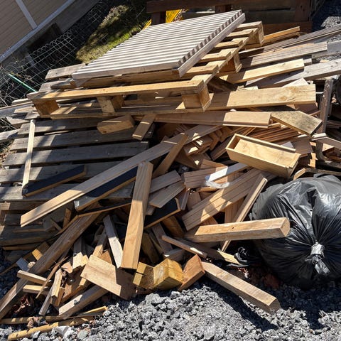 Annetaan pois sekalainen erä käytettyä puutavaraa. Sisältää eri pituisia lautoja, lankkuja ja rimoja. kulunutta ja säälle altistunutta.