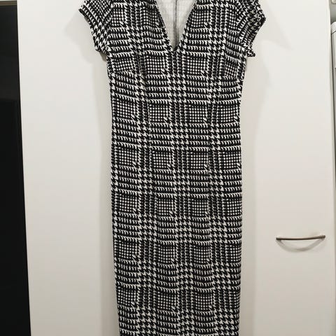 Käyttämätön harmaa mekko, paksua trikoota. Taskut ja A-linjainen helma.