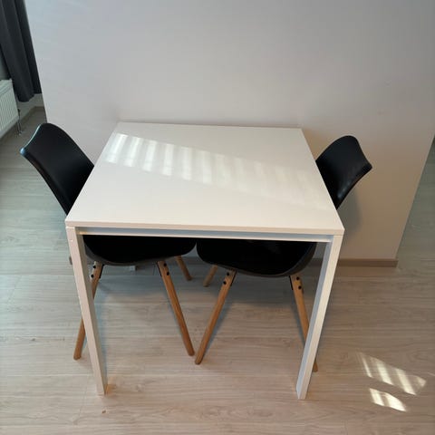 Itse tehty ruokapöytä. Leveys 77.5cm, pituus 119 ja korkeus 74cm. Käytön jälkiä on näkyy kuvissa.