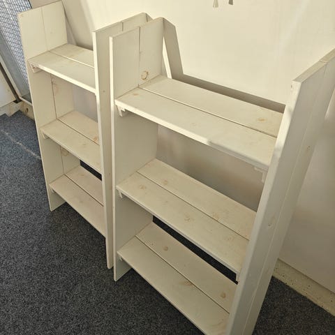Valkoinen puinen hyllykkö