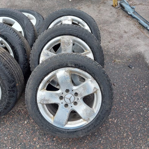 MB orkkis aluvanteet nastarenkailla. Sekä vanteet, että renkaat hyvässä kunnossa ja nastat tallella. Kulutuspintaa myös vielä reilusti jäljellä.
