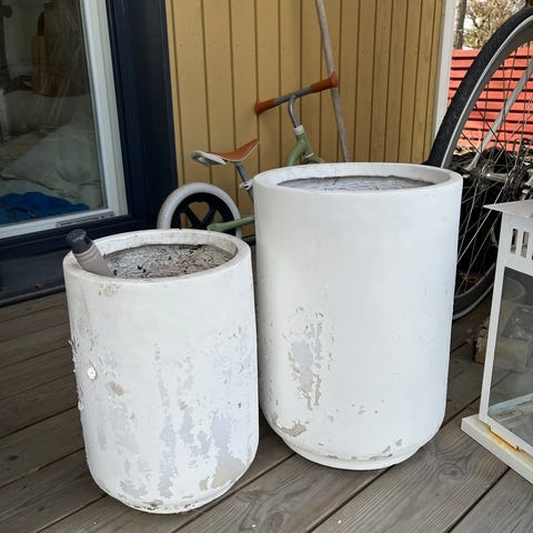 Annetaan huono- / korjauskuntoinen iso 660 l lasikuituroskis vaikka puutarhajätteen esikompostointiin. Reunassa pieni reikä, kannen nurkat halki jne. On kuitenkin toiminut ihan jees esikompostorina.