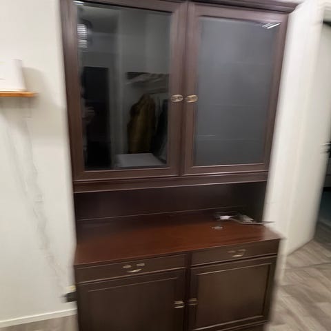 Myydään siisti,tumma hylly,jossa lasiovelliset kaapit, lasihyllyt. Kork. 170 cm ja lev. 190 cm. Pikainen nouto Akaasta.