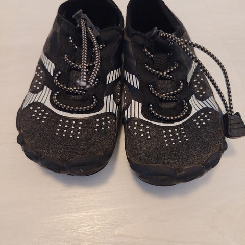Yhden kesän käytössä olleet paljasjalkakengät. Nauhoissa ja kankaassa pientä kulumaa. Yleisilme siisti ja menevät hyvin vielä seuraavalle kesän viettoon. Kokomerkintälappu on irronnut, mutta pohjallisen mitta on 18cm ja muistaisin kokomerkinnäksi 28.