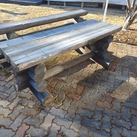 Maaliskuussa sahattu järeä ulkohirsikalusto. Pituutta 2,5m ja painoa sen verran että ei vie tuuli.
