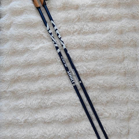 Exel merkkiset kävelysauvat joissa mahdollisuus ottaa tassut pois ja piikit tassujen alla.