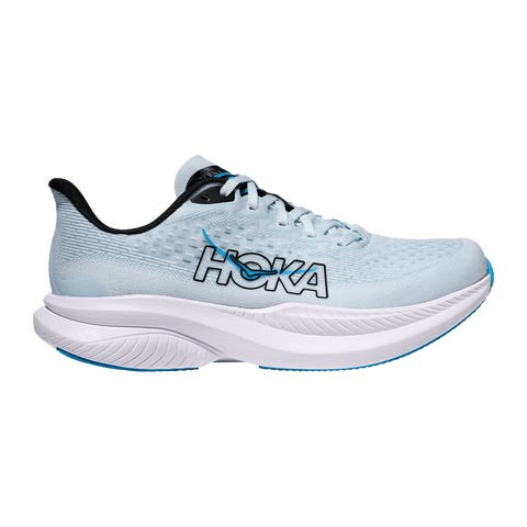 Kevyet ja mukavat juoksukengät, joissa on hengittävä päällinen ja jotka vaimentavat tehokkaasti. Kestävä ulkopohja takaa hyvän pidon alustalla. Sopii asfaltille, juoksumatolle tai soralle. Droppi: 5 mm. HOKA Mach 6 on kevyt ja mukava harjoituskenkä kovaan käyttöön, joka sopii juoksuun asfaltilla, juoksumatolla ja soralla. Juoksukenkä sopii hyvin myös arjen kävelylenkkeihin sekä kouluun ja töihin.Juoksukengässä on kevyt ja hengittävä verkkopäällinen, joka asettuu jalan ympärille mukavasti ja tukevasti. Päällinen takaa hyvän ilmanvaihdon ja hengittävyyden liikunnan aikana. Juoksukengän iltti on anatomisesti muotoiltu ja istuu hienosti jalan ympärille. Nauhat ovat joustavat ja varmistavat optimaalisen istuvuuden.Välipohjan kevyt ja mukava Super Critical Foam EVA -vaahtomuovi vaimentaa hyvin ja palauttaa tehokkaasti energiaa askeleeseen.Ulkopohja on valmistettu kestävästä Durabration-kumista, joka antaa hyvän pidon alustasta.