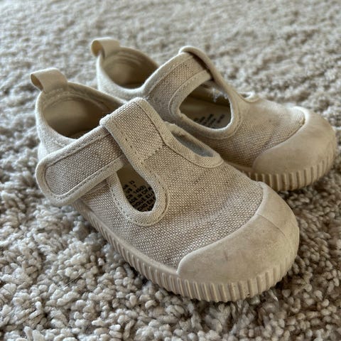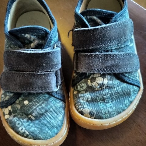 Hyvässä kunnossa olevat kengät, koko 23. Tarrat pitää hyvin. Kengän kärjissä näkyy kuvan mukaisesti käytön jälkiä.