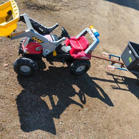 Myydään muoviset traktori ja peräkärry.