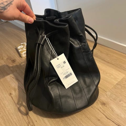 Marimekko nahkainen olkalaukku pixie. Laukku on mustaa pehmeää nahkaa, jossa on vaakasuorat tikkaukset. Laukussa on vetoketjusuljenta ja säädettävä olkahihna. Sisäpuolella on vuori ja vetoketjutasku pienten tavaroiden säilytykseen. Mukana tulee Marimekko-pussukka säilytystä varten kuvien mukaisesti, suojaa pölyä. Laukkua on kerran käytetty. Säilytetty pussissa..